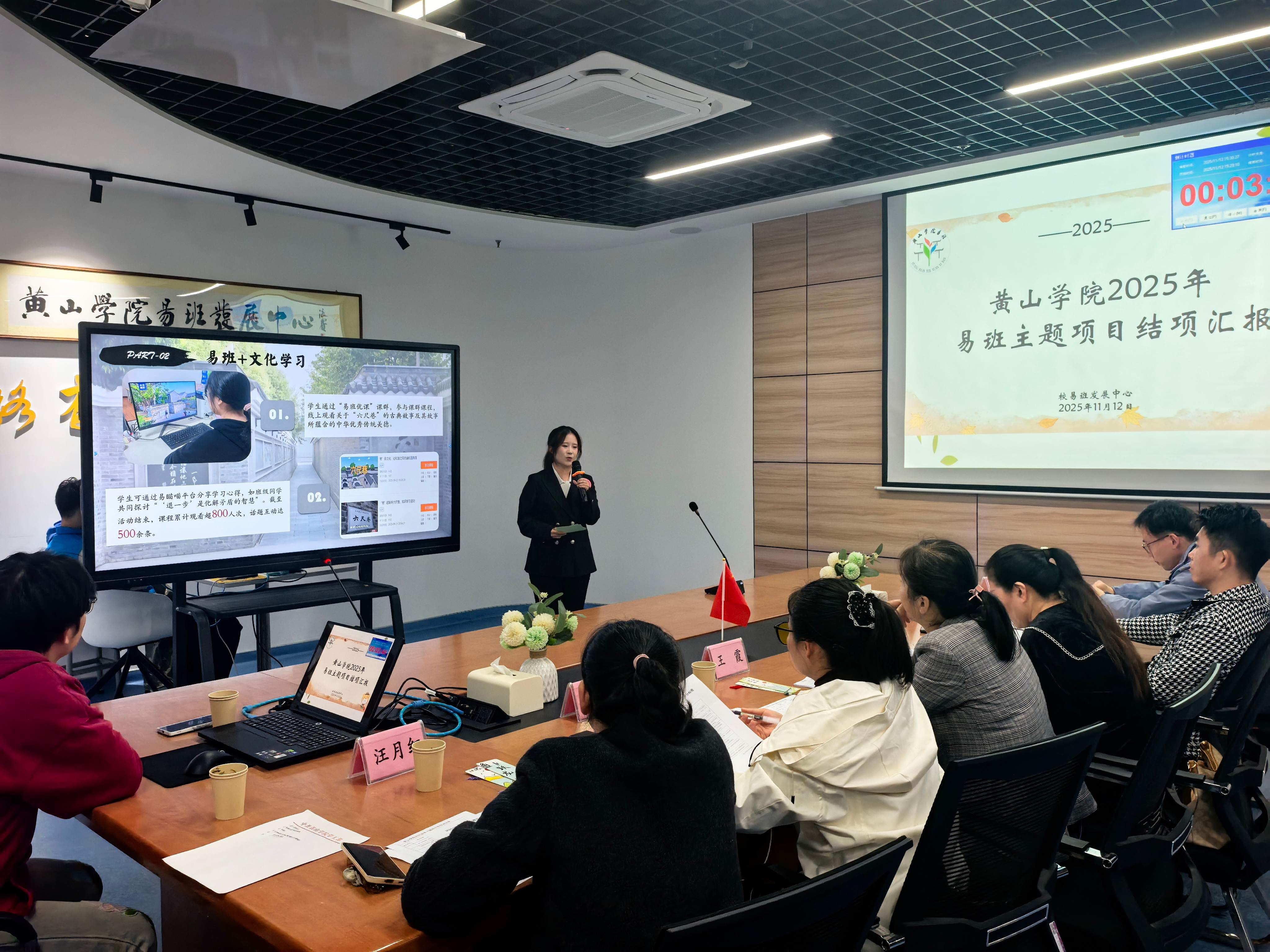 本次评审会采用“线上材料评分+线下现场汇报”双轨模式,线上环节聚焦项目材料的完整性与规范性,线下环节则由各项目负责人围绕“实施情况、成果创新、平台使用”三大维度展开汇报。汇报中,团队通过PPT演示、图片视频、数据图表及实物陈列等形式,直观呈现项目推进举措与落地成效。