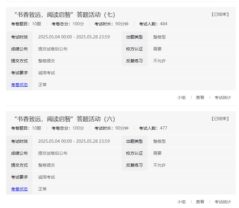 5月21日至28日,“书香致远,阅读启智”主题活动依托易班优课课群有序开展。活动设置书籍相关在线考试与课群投票环节,既帮助学生检验阅读成果,又引导学生深化对书籍内容的理解。此次活动吸引了众多学生主动投身其中,让书籍真正融入学生的日常生活,成为他们成长路上的“良师益友”。