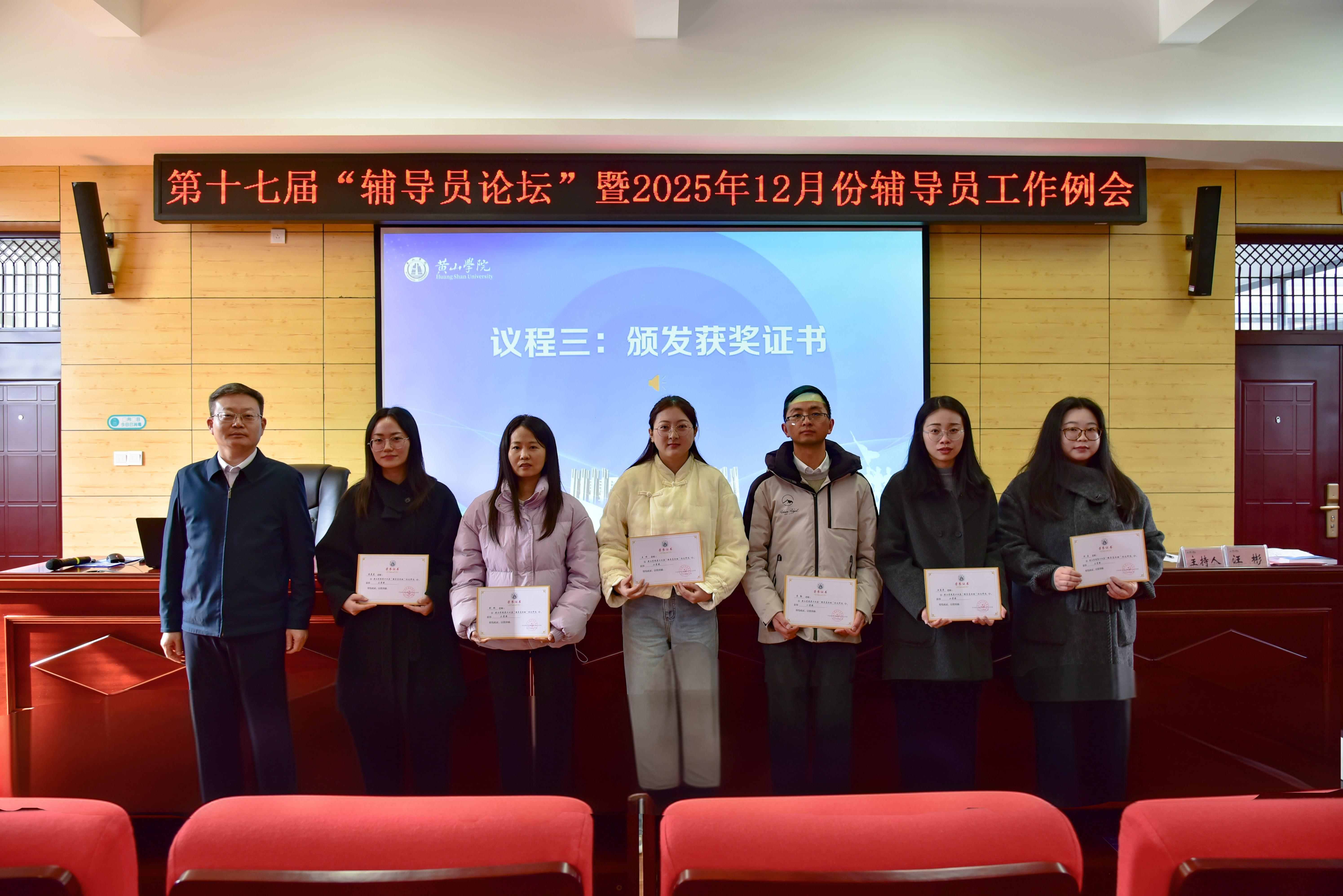 会上,刘力为获奖辅导员颁发荣誉证书并合影留念,激励全体辅导员以先进为榜样,深耕育人一线。