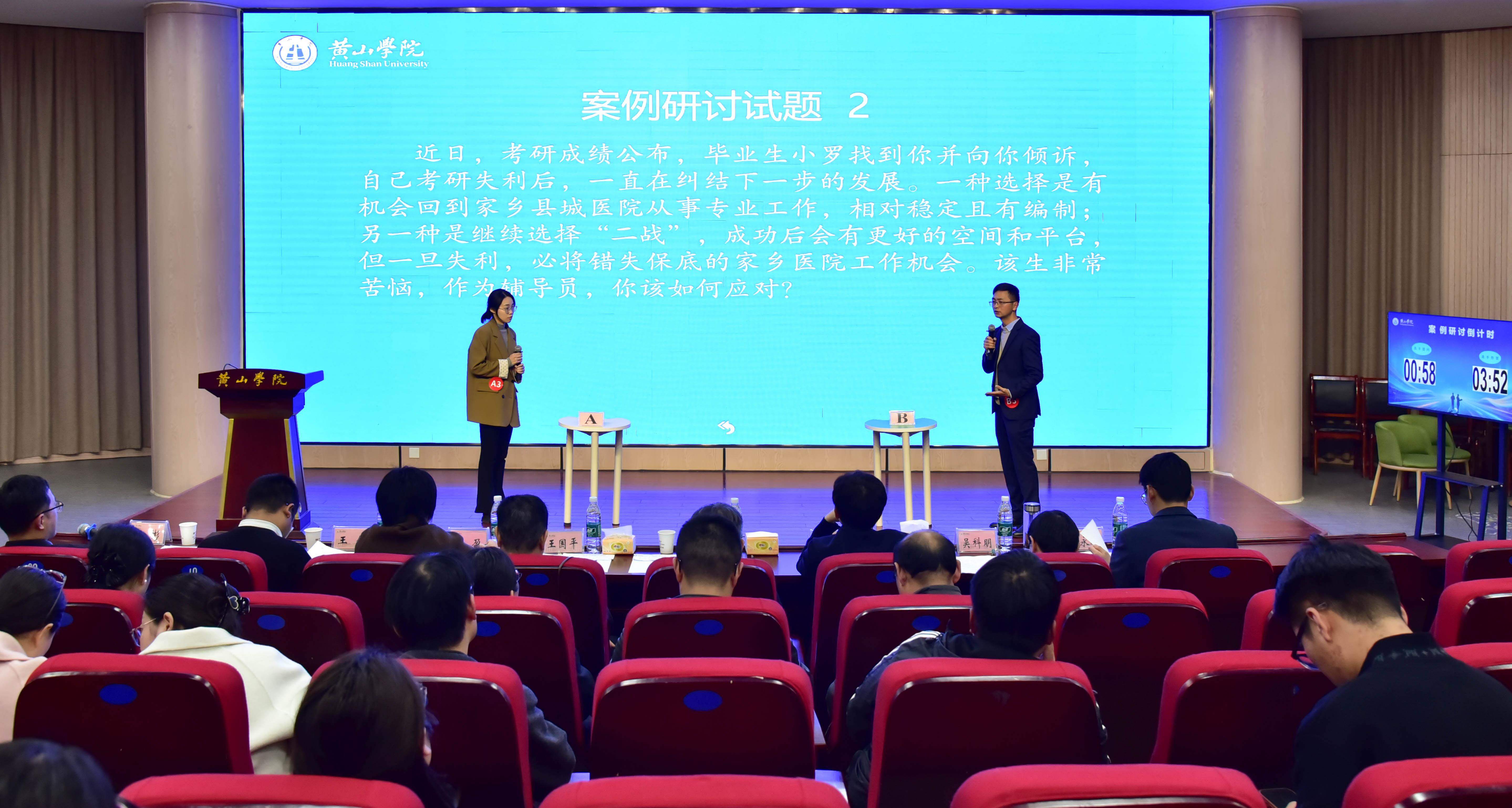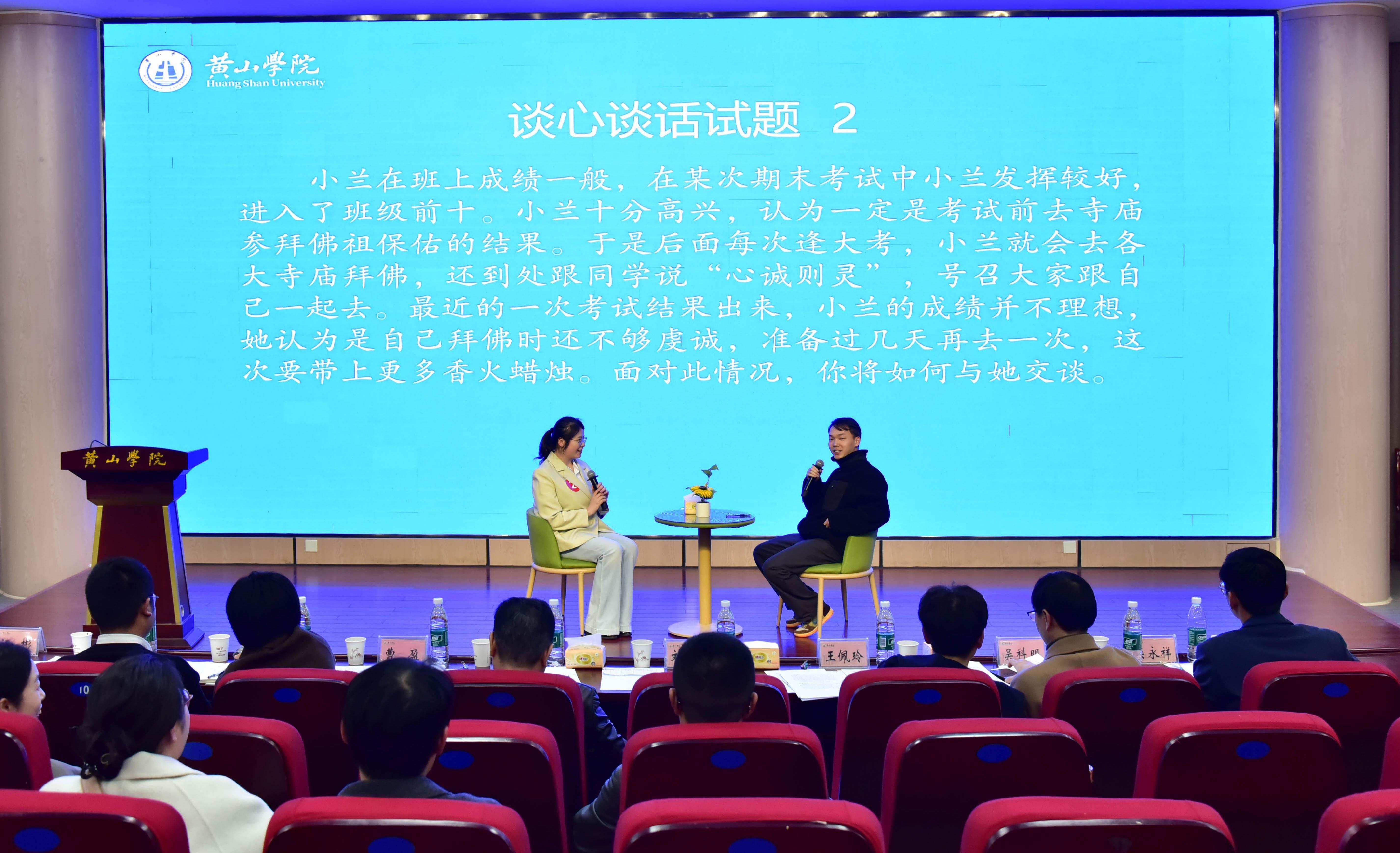 2026年3月25日,黄山学院第十届辅导员素质能力大赛在率水校区文端楼二楼报告厅举行。校党委副书记刘力,组织部、人事处、工会、安全管理处、教务处、学工部等部门负责人及2024年安徽省辅导员素质能力大赛特等奖获得者王伟担任评委。二级学院分管副书记及全体专职辅导员现场观摩比赛。