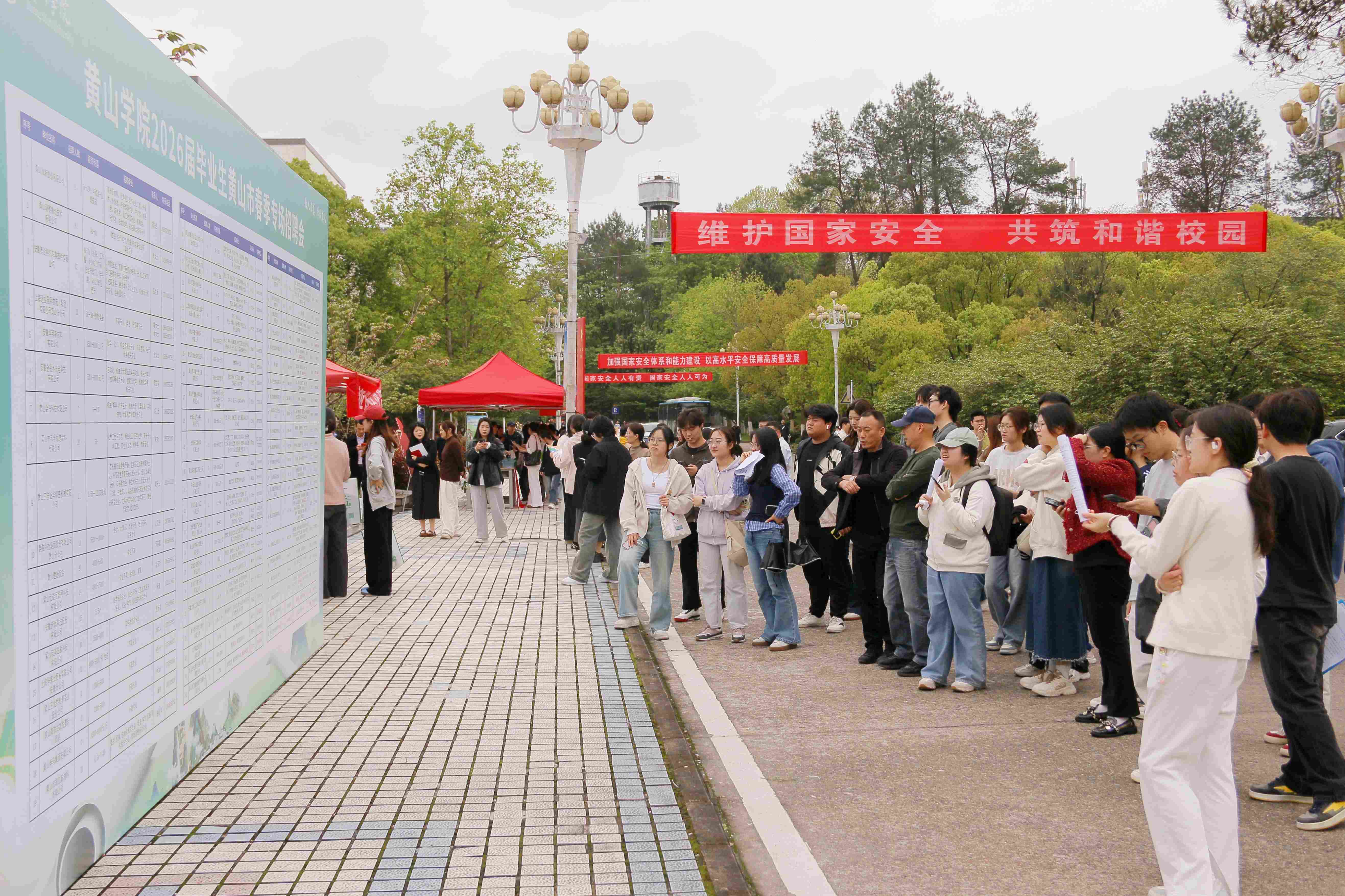 4月15日下午,我校在率水校区徽文化广场举办黄山学院2026届毕业生黄山市春季专场招聘会,我校毕业班辅导员、26届毕业生和部分大三年级学生参加招聘会。